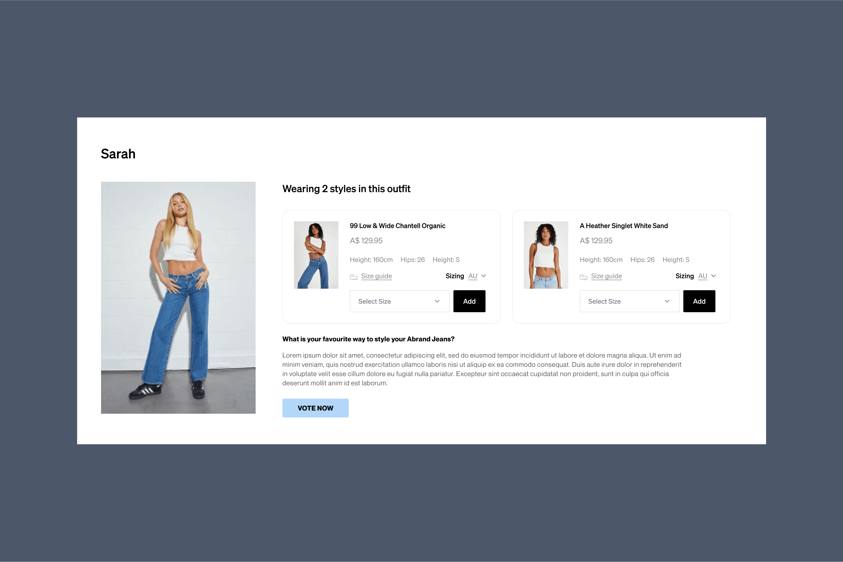 Throughout our collaboration with Abrand, we focused on implementing key features and extensive UI/UX improvements to markedly improve their website. Our contributions included developing a detailed Denim Fit guide, incorporating advanced filtering options, and adding personalised recommendations to enhance user engagement and drive sales.