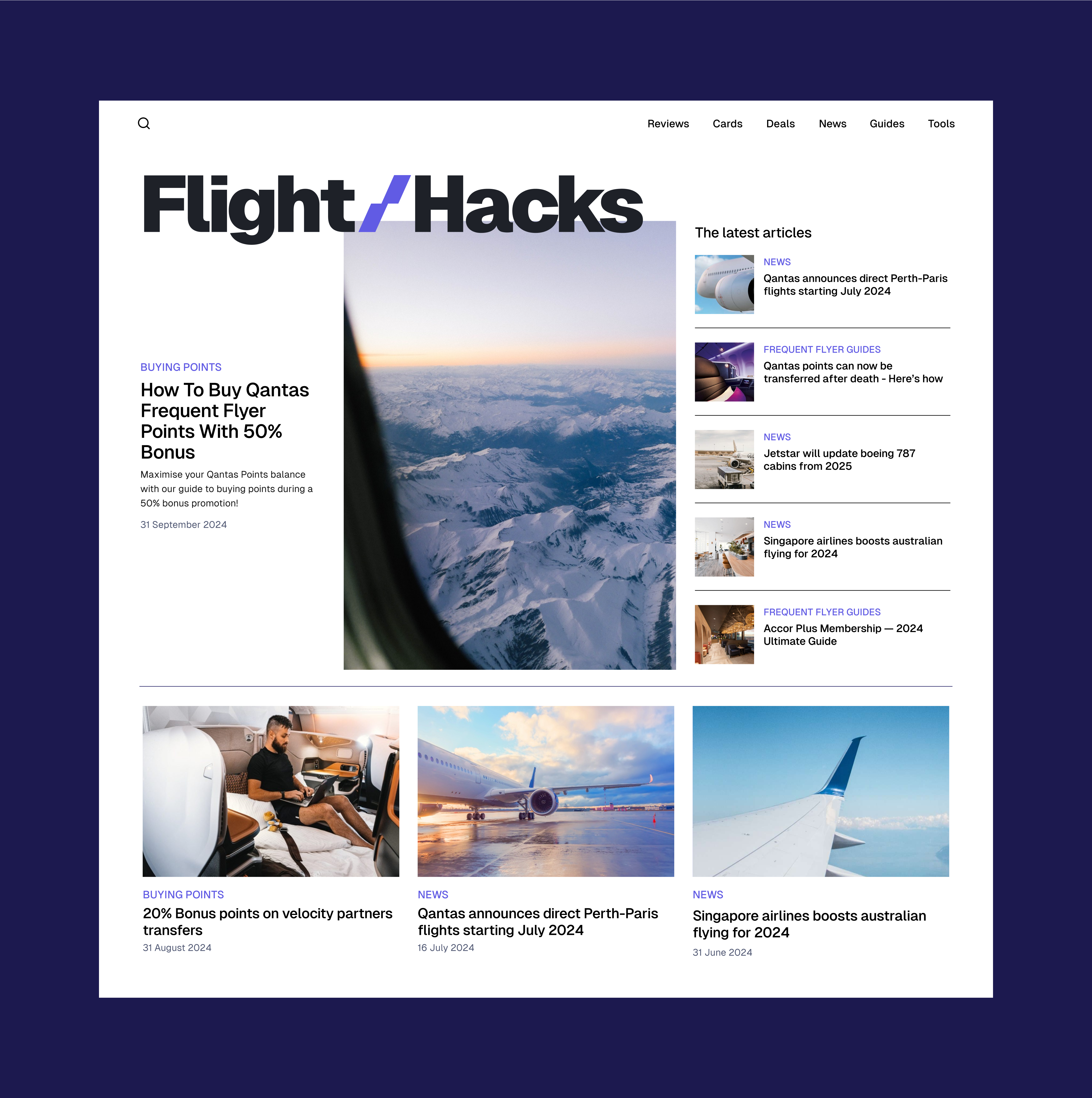 Flight Hacks is a leading Australian travel blog dedicated to helping readers maximise their travel experiences through expert insights, airline reviews, credit card rewards, and exclusive travel deals. Their platform serves as a go-to resource for frequent flyers and points enthusiasts looking to make the most of their journeys.